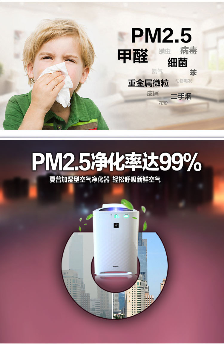 夏普加湿型净化器,高效净甲醛,惊爆优惠价:1980元,正品行货,假一罚十,可选颜色:白色,红色