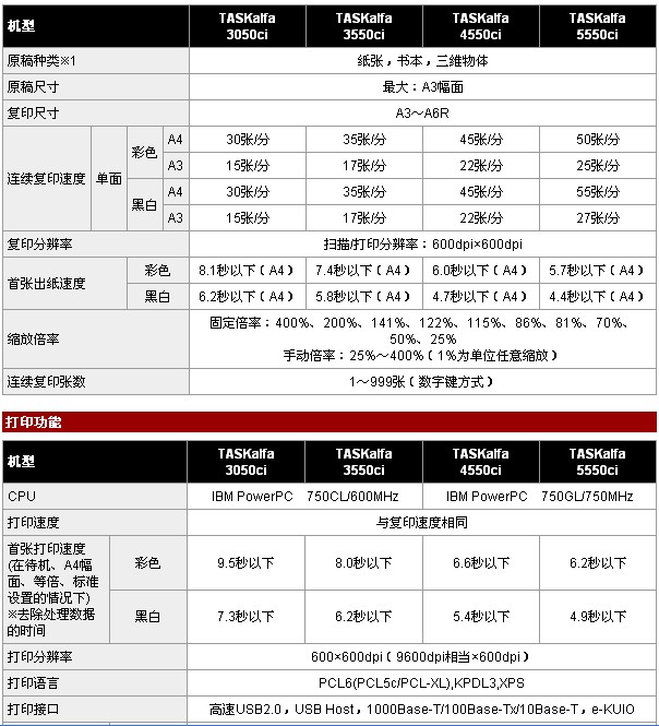 京瓷TASKalfa 3050/3550/4550/5550ci彩色数码复印机
