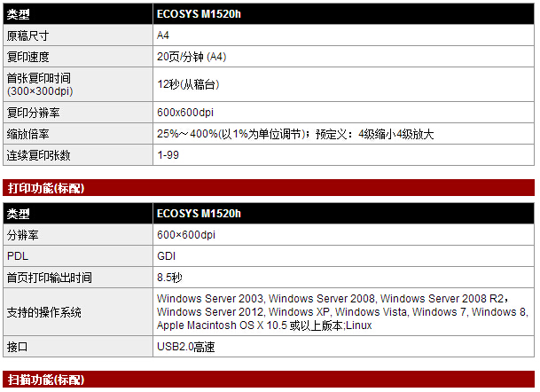 苏州京瓷 ECOSYS M1520h 一体机
