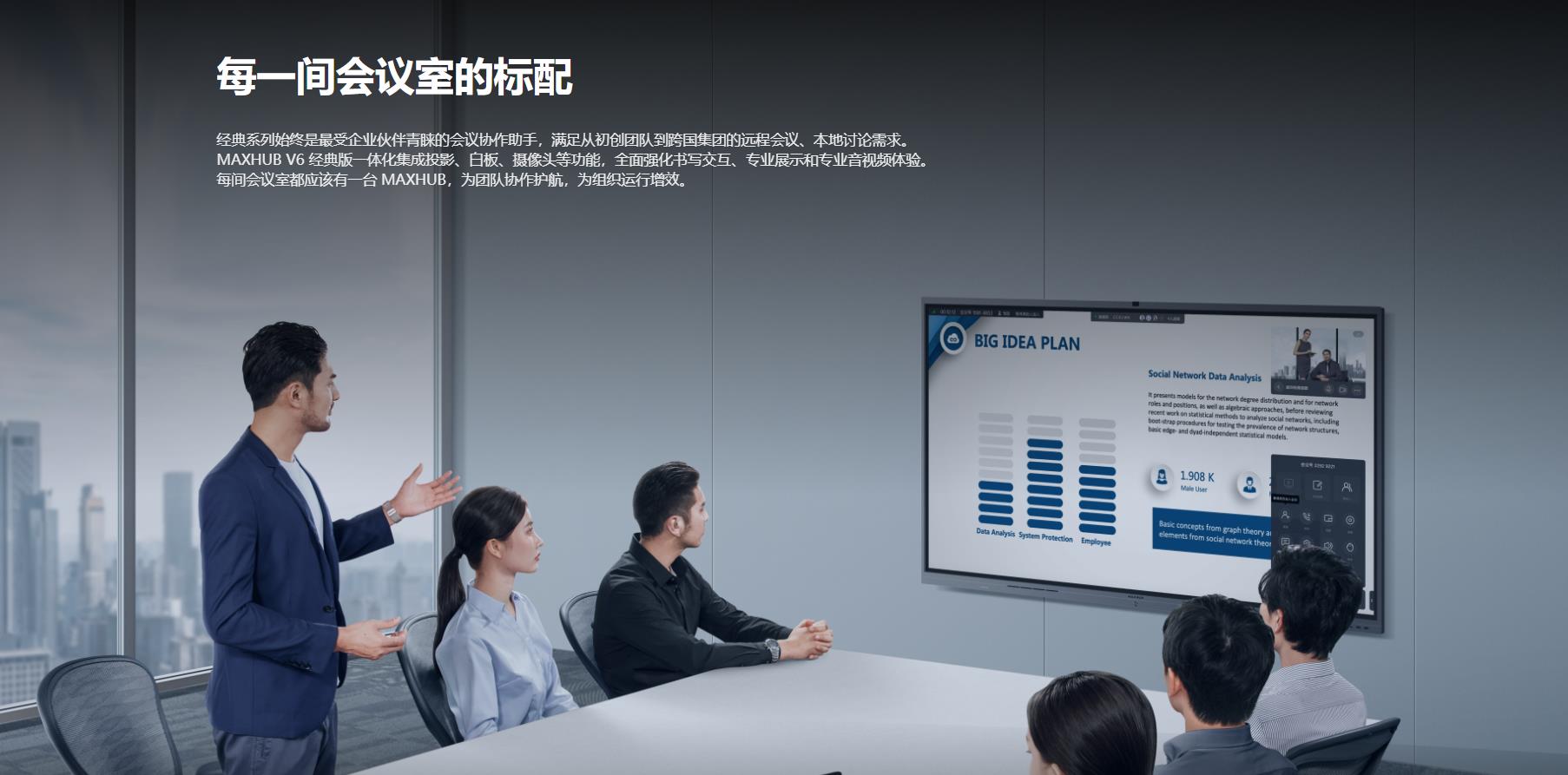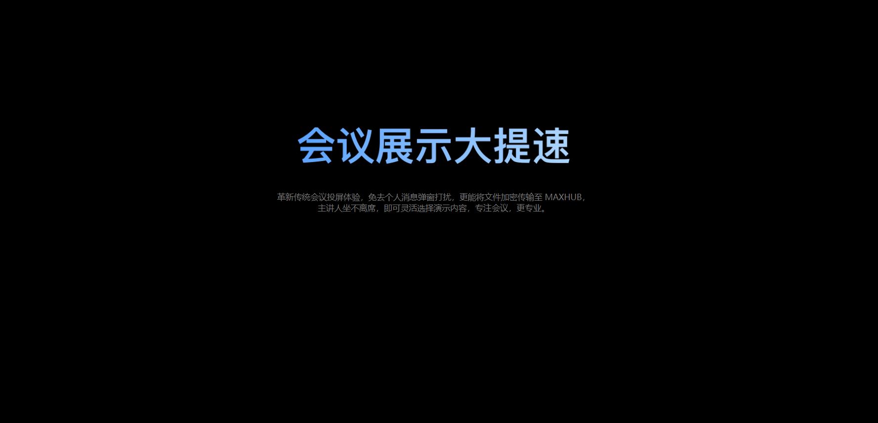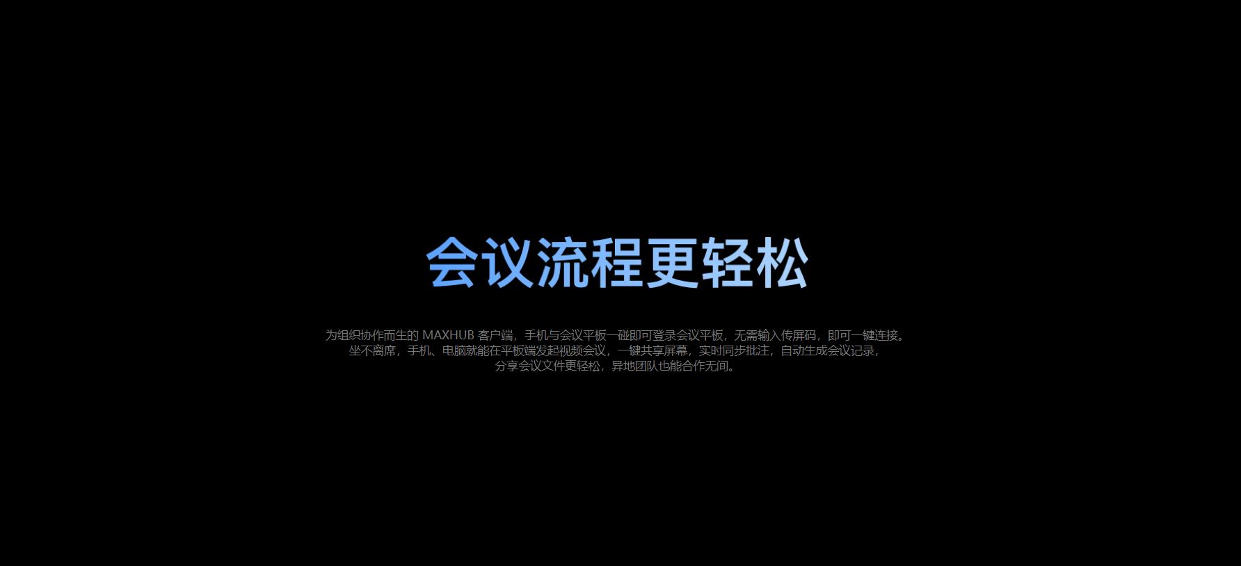 * 一键连接:电脑、手机、平板可通过 MAXHUB 客户端连接 MAXHUB,PC 端支持 Windows 7、macOS 10.10 及以上,手机、平板传屏支持 Android 9.0 及以上操作系统,iOS 端将在后续升级支持。 * NFC 连接:需要手机支持NFC功能,并安装 MAXHUB 客户端。无线投屏。 * 无线投屏:电脑、手机、平板可一键投屏,PC 端支持Windows 7、macOS10.10 及以上,手机、平板传屏支持 Android 5.0、 iOS 9.0 及以上操作系统。电脑可通过连接 MAXHUB 无线传屏器投屏。 * 反向触控:电脑通过无线投屏与 MAXHUB 会议平板连接过程中, 电脑屏幕画面被投影到 MAXHUB 设备上, 在 MAXHUB 会议平板上可以直接触控操作电脑,而无需单独在电脑上本地操作。 * 低书写高度:从屏幕到识别物体(手指、红外书写笔或其他遮挡红外光线物体)的最低距离为 1.5mm 。 * 0贴合:玻璃和显示屏之间的距离为0.8mm,减少空气折射,降低视差,提升显示效果; * 感光面积提升 25%:对比上一代 MAXHUB 经典版。 * 视野扩大 37.3%:对比上一代 MAXHUB 经典版。 * 定位声源:在识别范围内(会议平板正前方180°,8范围内),MAXHUB 会议平板可根据主讲人的讲话语音采集,确认主讲人所在会议室中的位置方向。 * 8米远距拾音:在人正常说话,周边环境音为 40~50db 情况下,由 MAXHUB 实验室内部测试所得结果。 * 屏幕共享:支持通过软件将设备桌面内容共享给所有参会人,该功能须在联网状态下方可使用。 * 兼容第三方会议应用:指支持 PC 端安装的第三方会议应用。