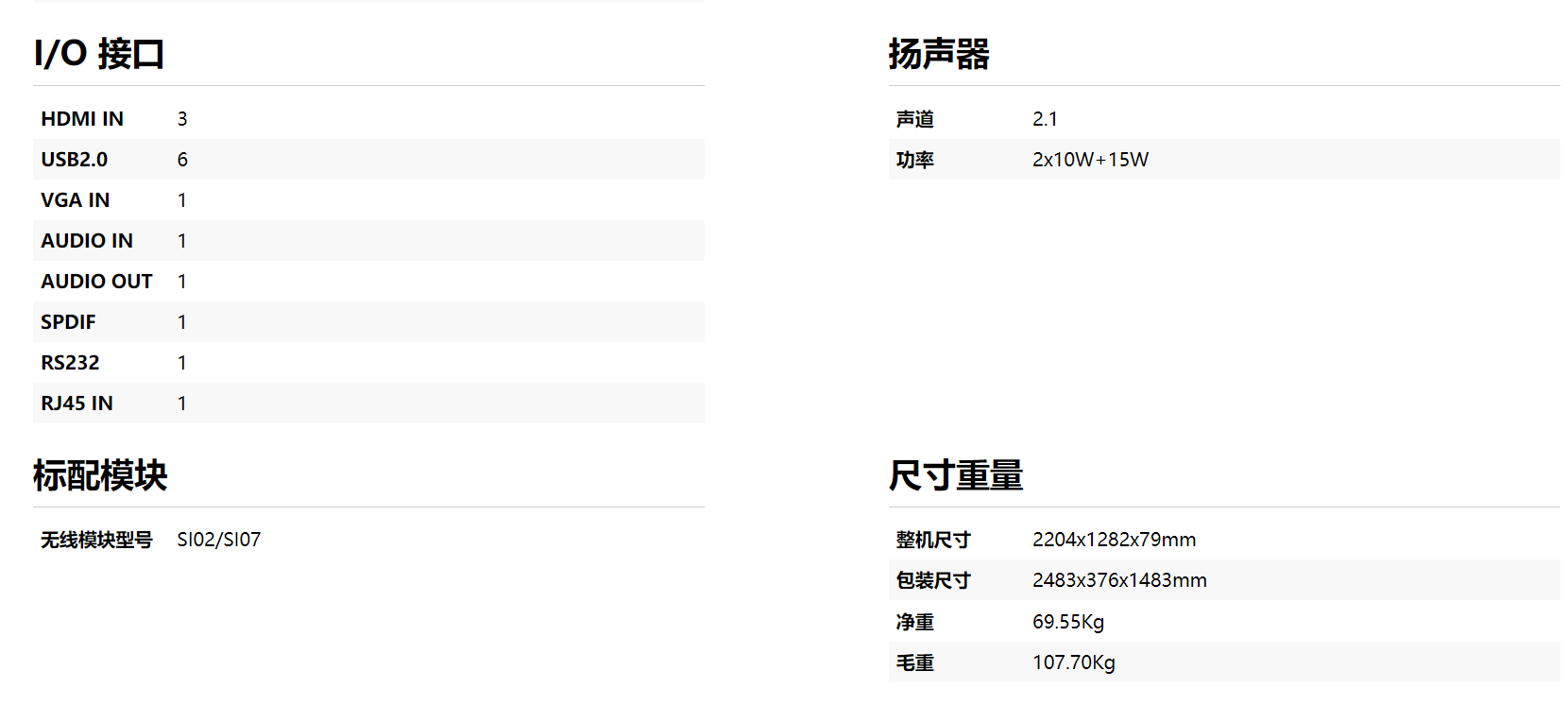 基本规格