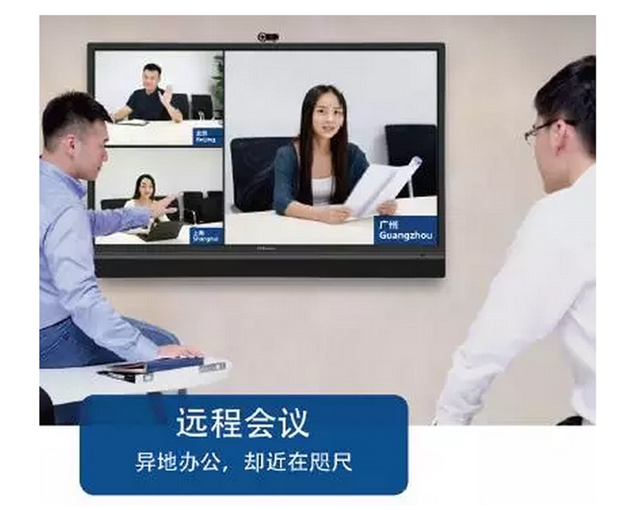 通过内置的wifi,只需普通网络即可实现高清、流畅、稳定的远程视频会议。远程会议模式下,屏幕异地实时共享,白板功能支持双向涂写操作,多方研讨实时互动,生动逼真如同共处一室。