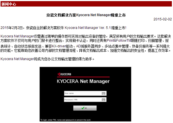 京瓷文档MK官方端网站登录入口Kyocera Net Manager隆重上市