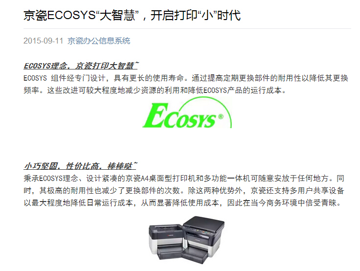 京瓷ECOSYS“大智慧”,开启打印“小”时代