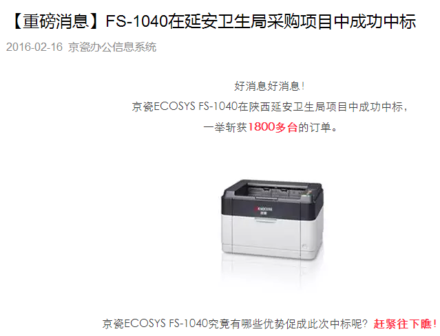 【重磅消息】FS-1040在延安卫生局采购项目中成功中标